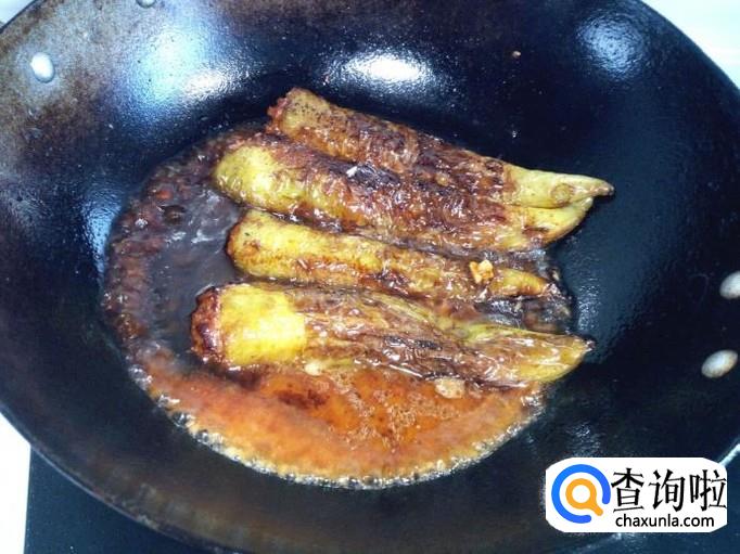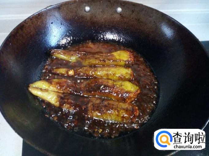 煎炸至青尖椒变软,用筷子可以插透,然后把调和好的料汁倒入锅中,烧开,小火焖烧一会(如果油过于多,可以盛出一部分)。