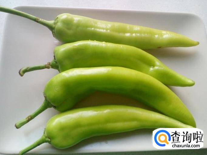 把青尖椒用水清洗干净,控干水分,备用(最好再用干抹布擦一下,避免煎塌的时候炸锅)。