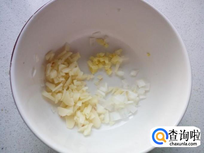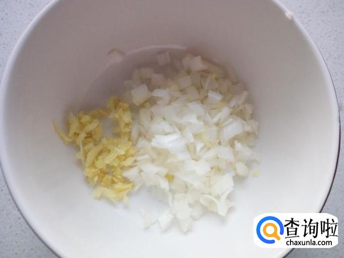 葱,姜,切成末,准备放入肉馅里用。另切一份葱,姜,蒜,准备放入料汁里用。