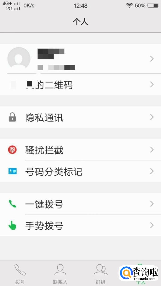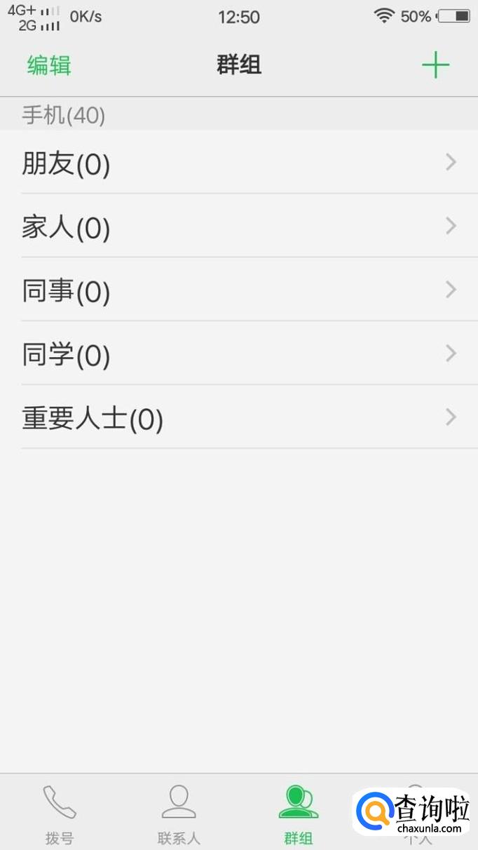 在联系人里面一个有四个图标:拨号、联系人、群组和个人。