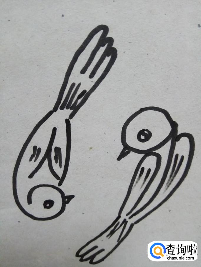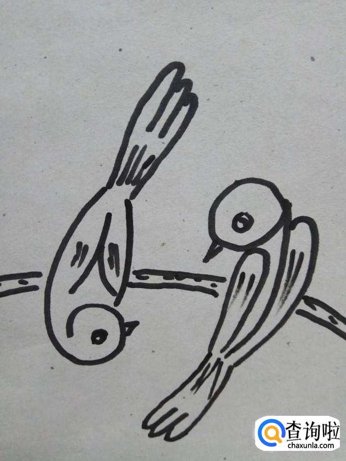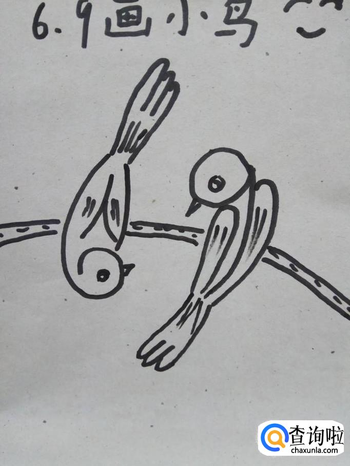 第七步,用数字6和9画简笔画小鸟已经全部完成了。这个时候可以和孩子交流一下。做个小游戏,让孩子在两只小鸟身上找到数字6和9,数字真的非常有用哦。
