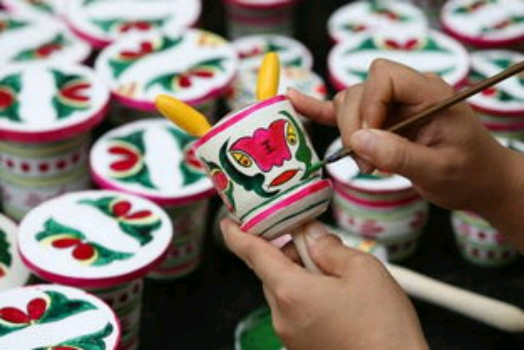中国民间工艺品中国民间艺术工艺品历史悠久,内容丰富多彩。这些工艺品大都与民间传说有关,材质有陶瓷、泥塑、布艺、木头、灯彩、吊饰、丽江木刻、桦皮工艺、漆器工艺、兽皮工艺、砚石工艺、竹编工艺、漆器陶具、玉器工艺、大理石工艺、土家族黄杨木雕、瓷器、风筝、剪纸、麦杆画、年画、铅笔屑画、唐卡、拓真画、银饰、纸编画、苏绣、鱼皮衣等。内容大都是精神活泼向上、吉祥如意、长命健康、富贵有余、儿孙满堂等,用于民间传统节日、传统宗教和民族饰品用等。我顶多更喜欢书法一点吧。
