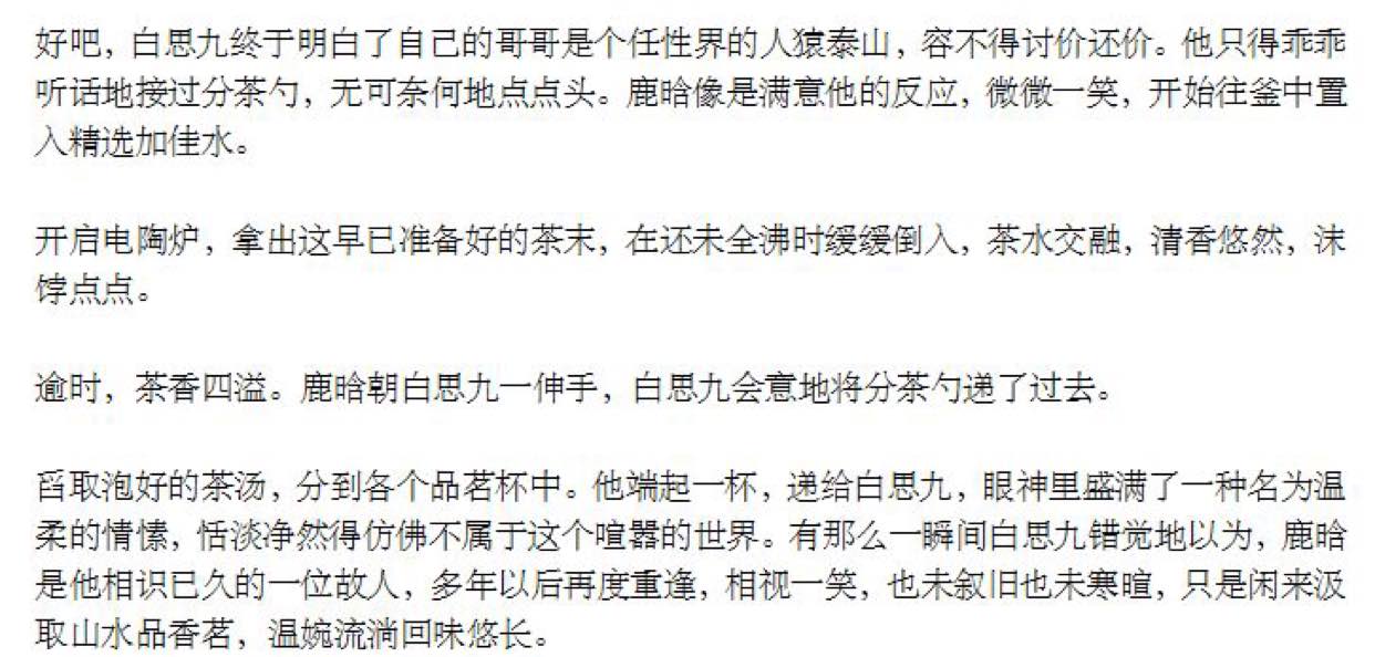 后来朋友开始写小说的时候很愉快地和我分享起了写到茶艺时的片段。