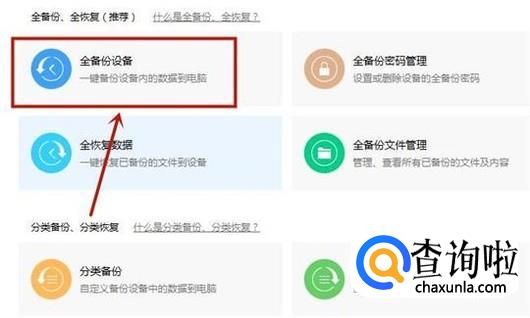 接着点击全备份设备,如下图所示。(这里的全备份当然包括手机通讯录)