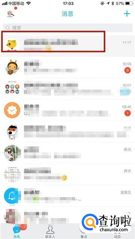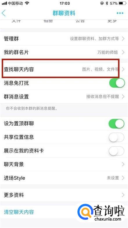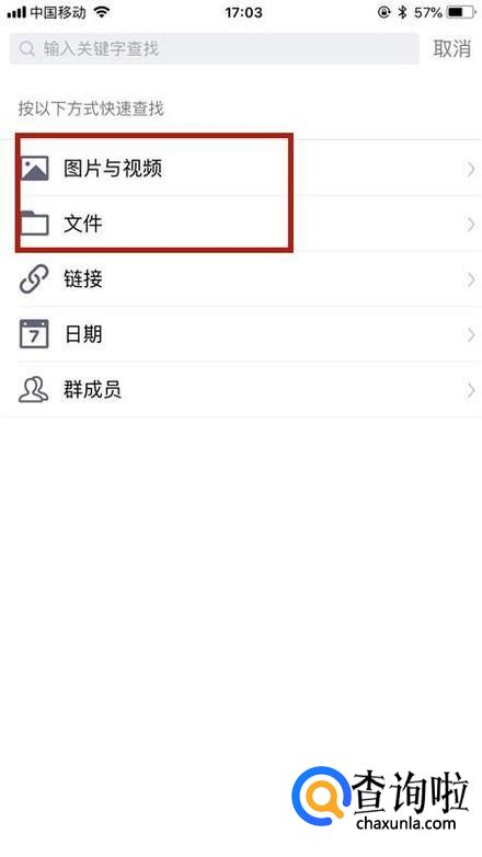 接着选择你要查找的聊天内容的分类,如下图所示。