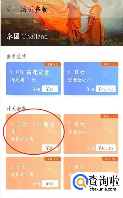 我随机选择“泰国”,这里面会有流量套餐包可以供你选择,根据自己的需要。