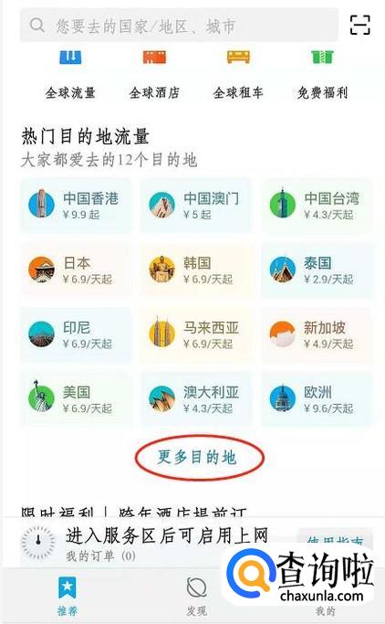 如果在这里没有找到你要去的国家,可以点击下方的“更多目的地”。