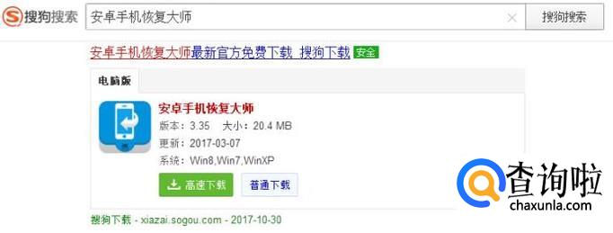 在电脑上下载安装恢复工具,这里使用安卓手机恢复大师软件为大家讲解恢复的过程。软件可以在浏览器上搜索下载的。