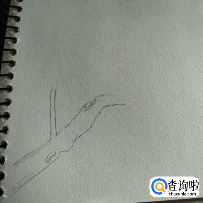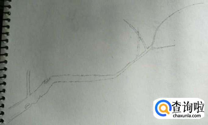用铅笔在素描本的左下端点画出梅树最粗的树干,为了增加一些傲骨临雪的感觉,我们在梅树上画出一些凹凹凸凸的小坑,在左上边的部位画出第一根分干