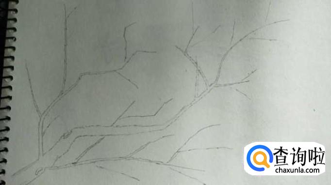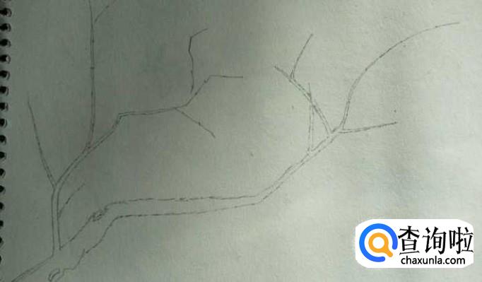 以同样的方式,在第一根分支的下面,如下图所示,我们勾勒出第二跟大的分支并且花画出各小支,这样,树干树枝部分就OK了。