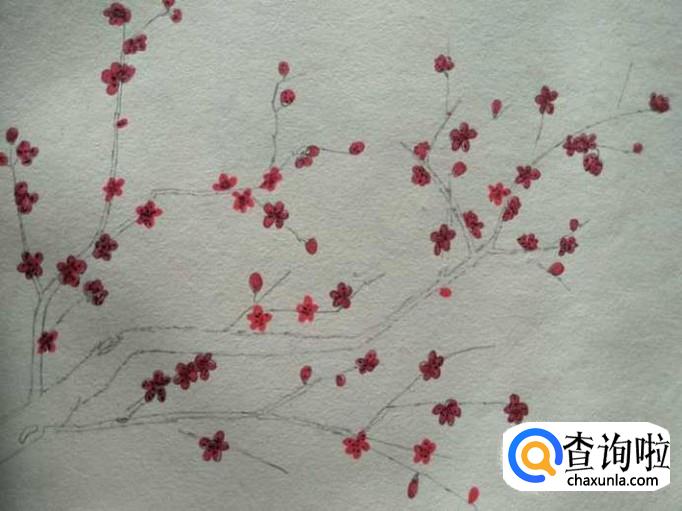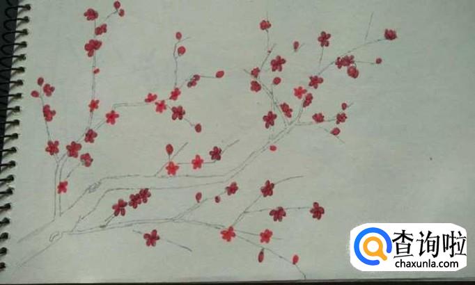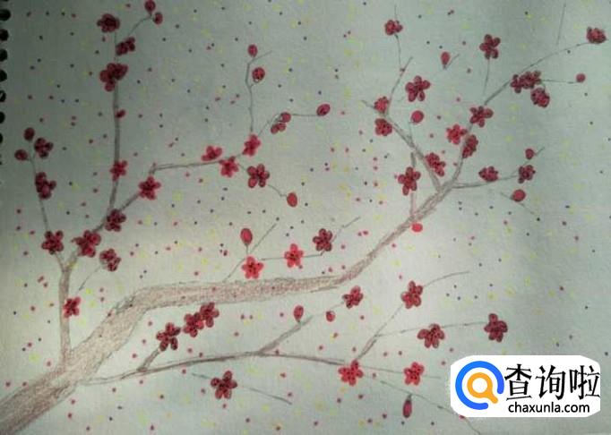 用同样的方式,将整树梅树都画上梅花