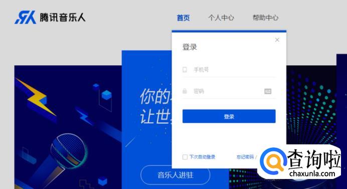 搜索进入腾讯音乐人页面后,直接点击音乐人入驻再继续后续的准备,这时候就需要注册一个账号了,账号需要手机号进行注册。如果已经注册过的账号就会有个人账号的显示,新加入的是需要注册一个账号后才会有的。