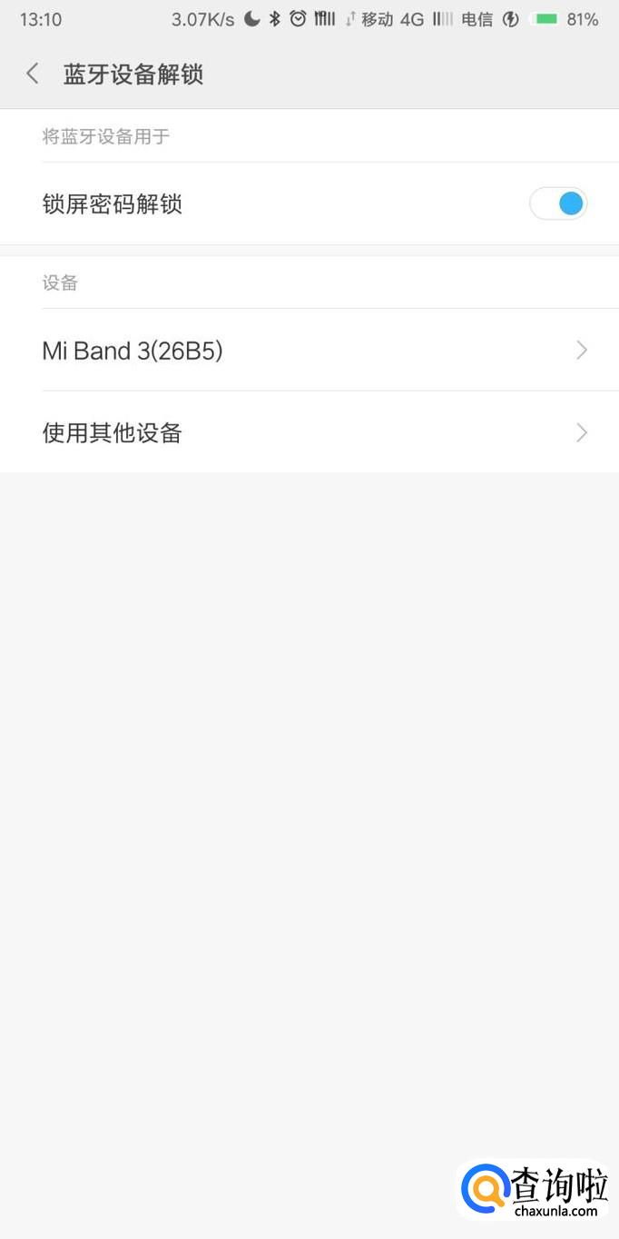 输入密码以后点击开启锁屏密码解锁,然后选择手环2设备,这就生效使用了。
