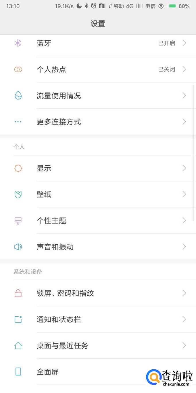 打开手机系统设置以后,下滑找到锁屏、密码和指纹,然后点击打开;