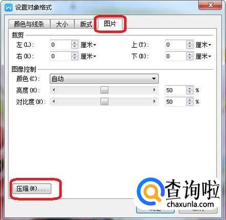 然后,选择“图片”标签,里面有一个“压缩”按钮,点击一下。
