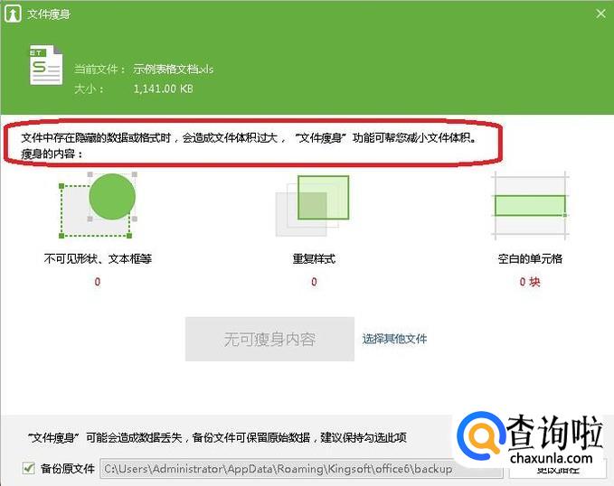 我们看到,如果文件中存在隐藏数据或格式,会造成文件增大,此时使用文件瘦身,就可以减小文件大小。