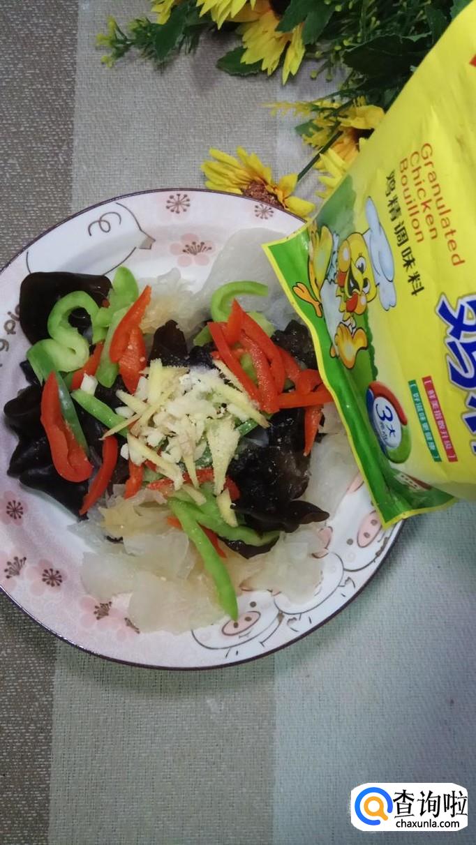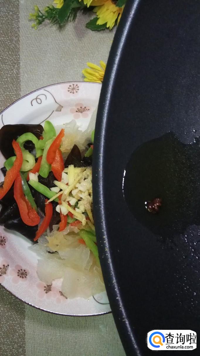 黑木耳适量,银耳适量,青椒适量,红椒适量,姜适量,蒜适量,盐适量,我想粉适量,生抽适量,白醋适量,花椒适量。