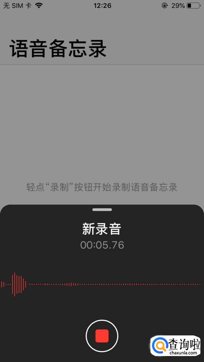 打开语音备忘录后,点击最下方“录制”图标,开始录制语音。