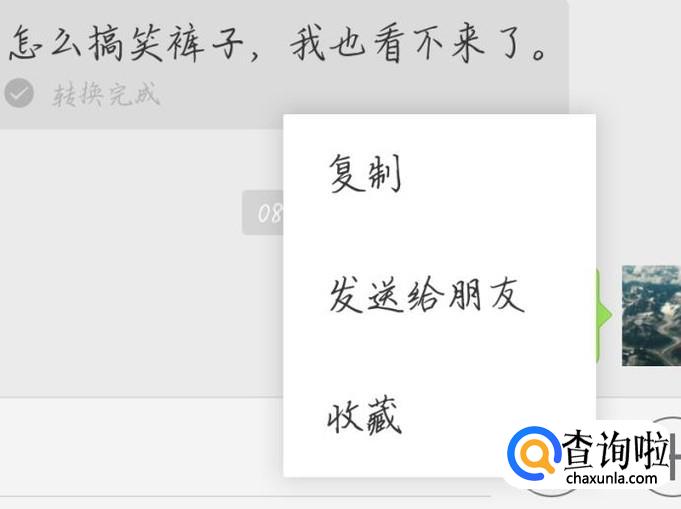转化为文字后的界面如图1所示。长按文字,出现如图2所示的界面。点击发送给好友。这个要普通话说的标准