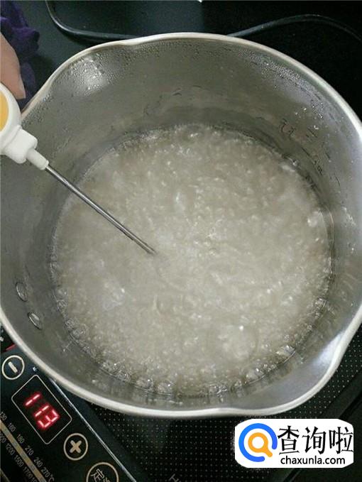 然后,我们用煮锅煮开适量的清水,然后将琼脂粉倒入沸水中,这个过程要不停的搅拌,以保证琼脂粉均匀的溶解在水中。