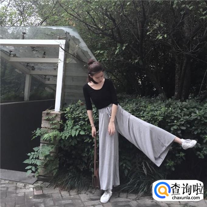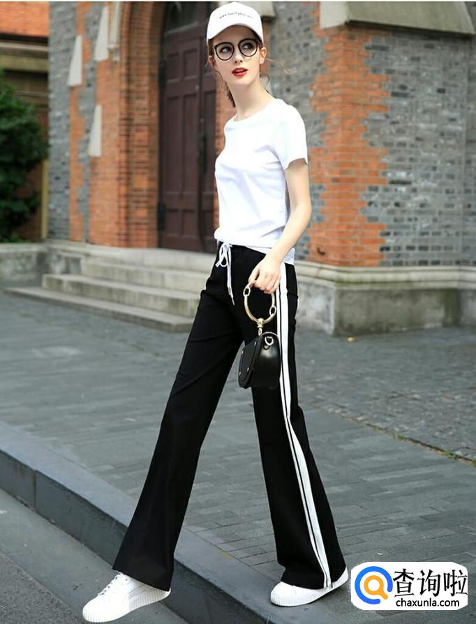 都说白色t恤是百搭的,对运动阔腿裤同样也适用,运动阔腿裤搭配白色t恤既修身有舒适