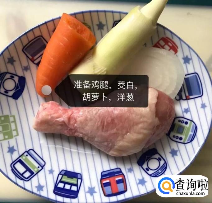 首先准备好要用的鸡腿、茭白、胡萝卜和洋葱,如下图所示。