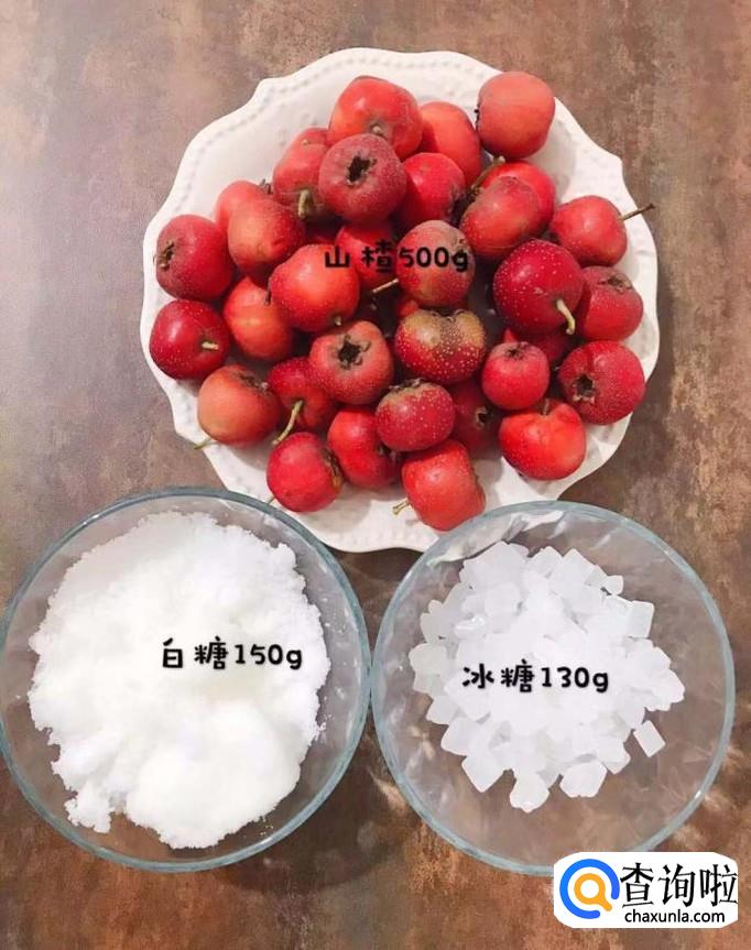 首先准备好我们需要用到的所有材料,如下图所示。小贴士:山楂500克,白糖150克,冰糖130克。