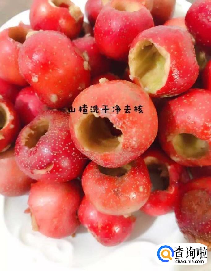 然后将山楂洗干净去核,如下图所示。