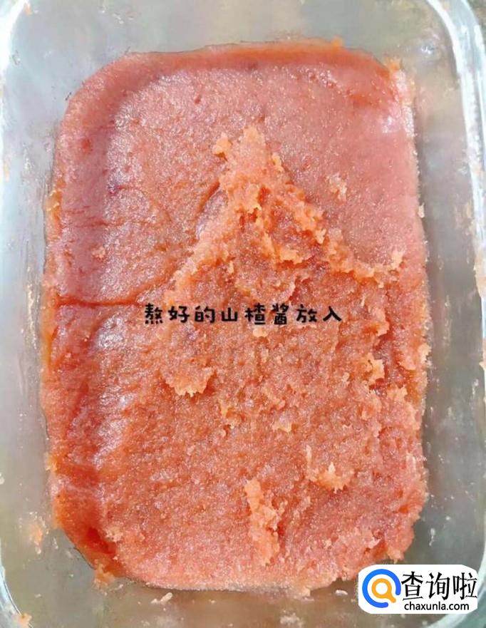 接着把熬好的山楂泥装进相关的容器中放凉,如下图所示。