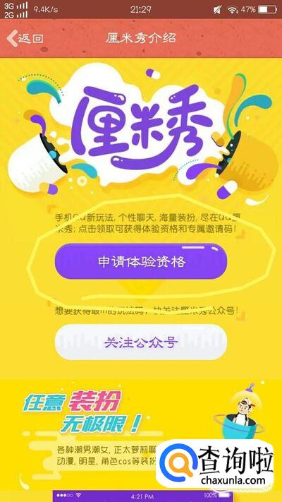 最后,大家点击“申请体验资格”,并点击屏幕下方的“开启厘米秀”即可