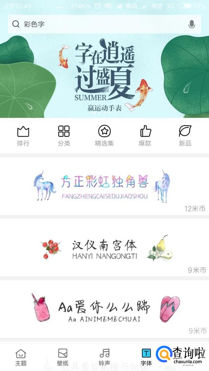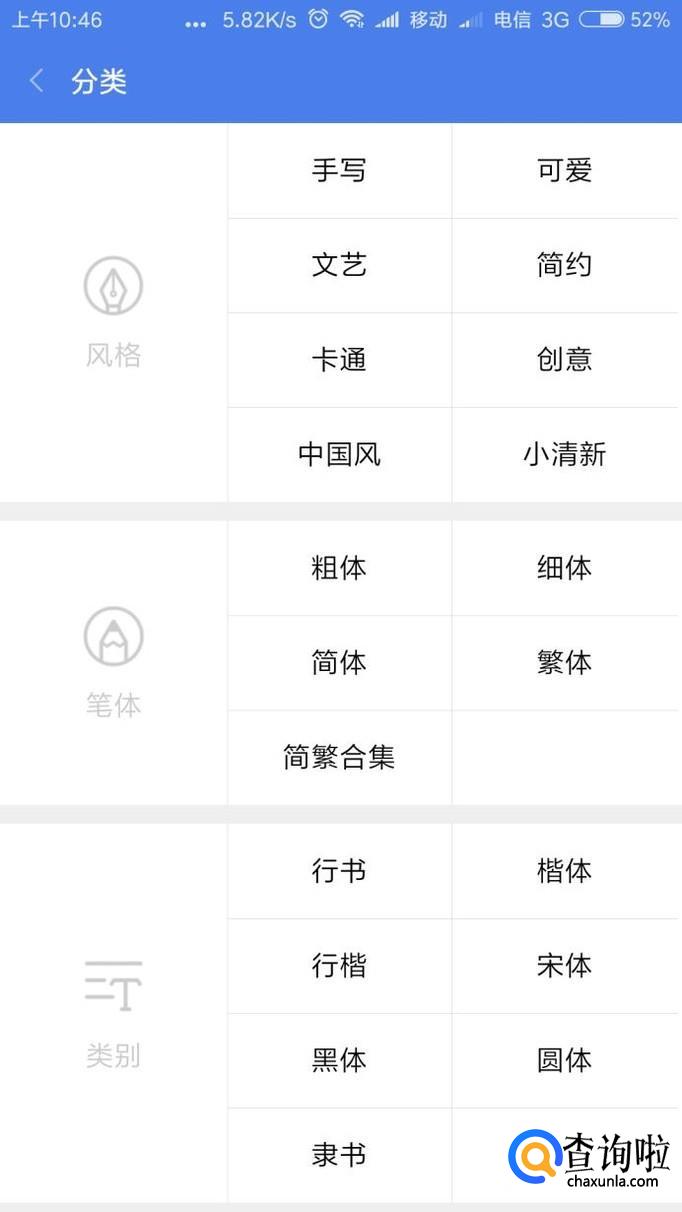 退出返回,再点击分类,就可以进入到字体的精准筛选的分类目录下,如下图所示,点击进入并且应用即可。