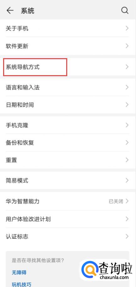 在系统设置界面中,找到“系统导航方式”,点击打开。