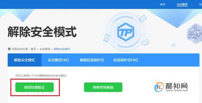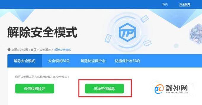 当我们在游戏中,点击“确定解除”安全模式的选项时,会自动跳转至腾讯游戏安全中心的网页。