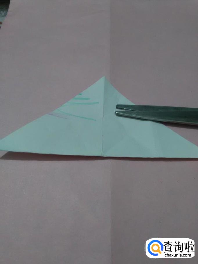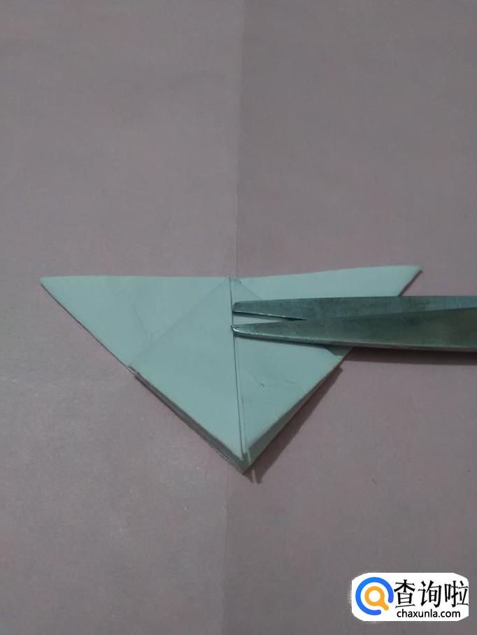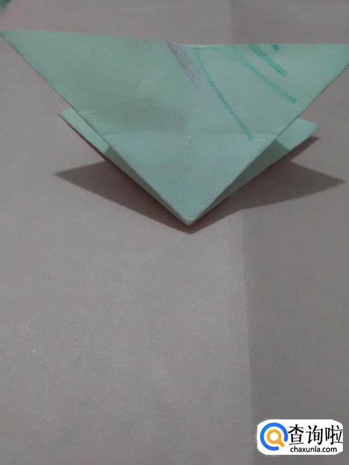 将纸反过来,把下面的角向上折,多余的小尖折到后面去。