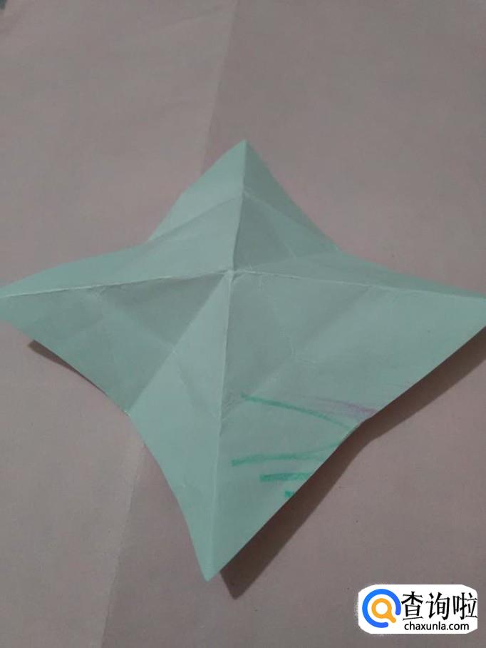 将正方形下边的角向上折,然后把两边的角向内侧折,折成如下的样子。