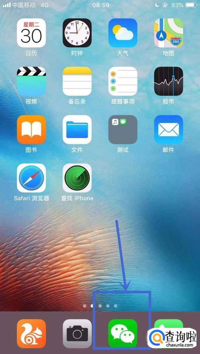 首先在我们的手机桌面上找到微信并点击它,如下图所示。