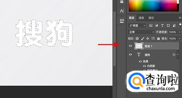 添加好之后效果图如下,接着CTRL+左键点击文本图层生成选区。