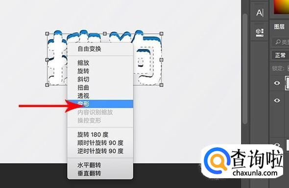 接着右键点击白色图层,选择“变形”