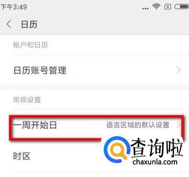 弹出下拉菜单再点设置,进入到日历设置页面;如果你想设置一个星期的开始日,那么,就点击“一周开始日”这里。