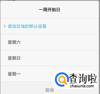 弹出四个选项,在这四个选项中选择一个作为一周的开始日期。