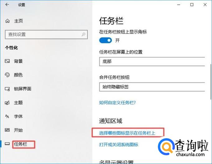 弹出的界面,我们点击任务栏,然后我们点击选择哪些图标显示在任务栏上;
