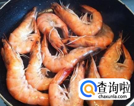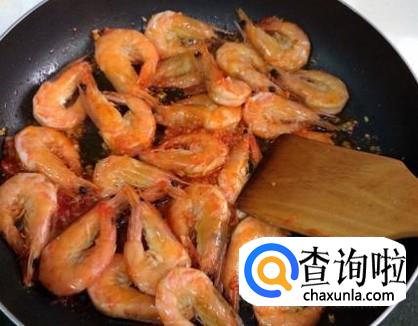 将大青虾放入锅中,用铲子翻炒,将大青虾炒成红色。