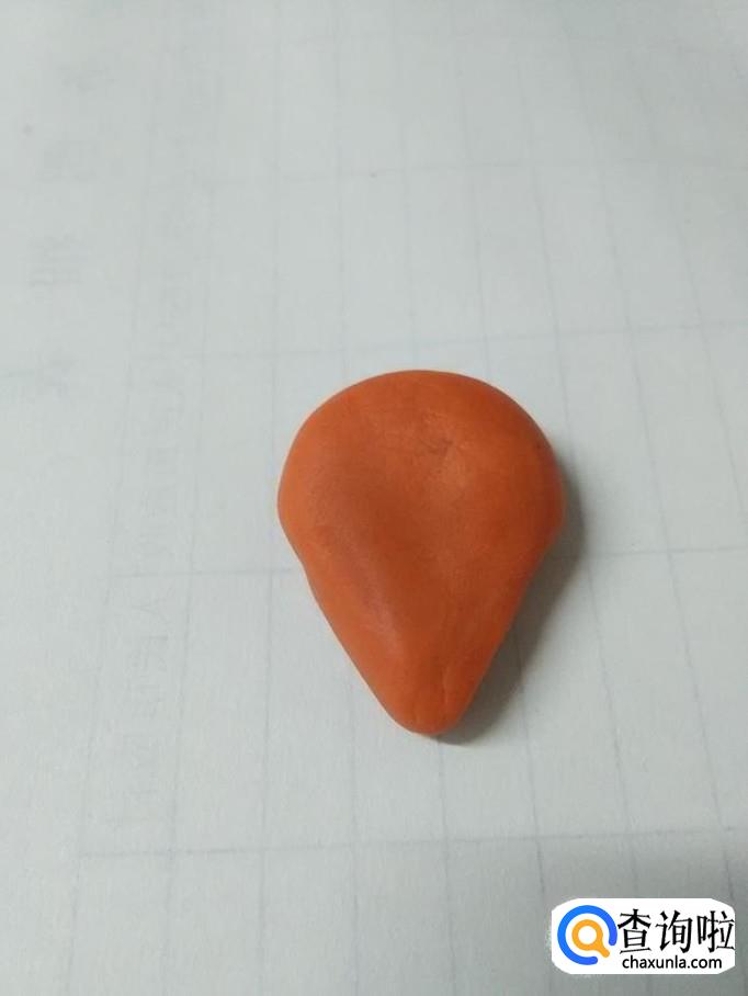 用桔红色橡皮泥捏一个水滴的形状,当作小狐狸的头。
