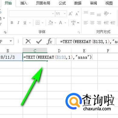 接着,我们在C133单元格输入:=TEXT(WEEKDAY(B133,1),"aaaa")