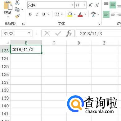 比如,在B133单元格输入日期,如下图所示。