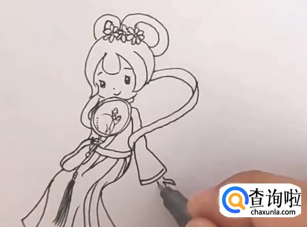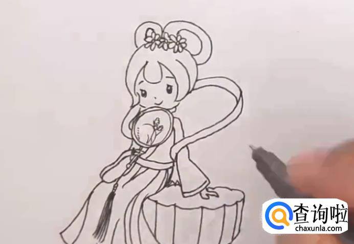 接着画出嫦娥的衣服。如图所示。
