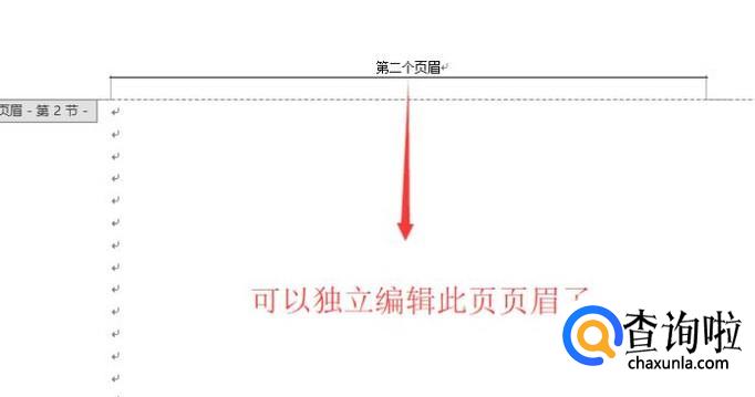 最后我们编辑页眉区域,编辑完成以后,你就会发现第二页的页眉和第一页的不一样了,如下图所示