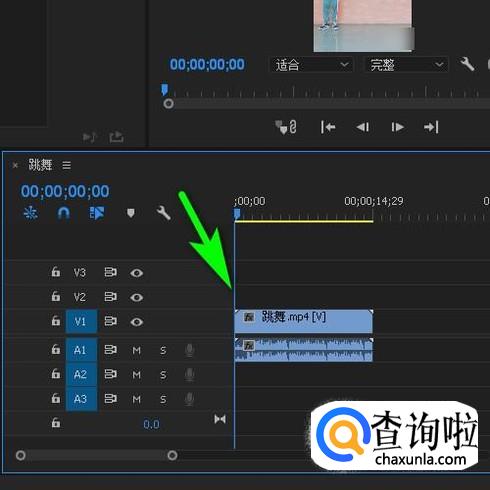 再放开鼠标,完成导入视频的操作,视频显示在序列面板的视频轨道中。
