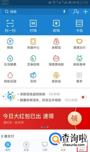 首先,我们打开我们的支付宝,之后我们点击右下角我的;