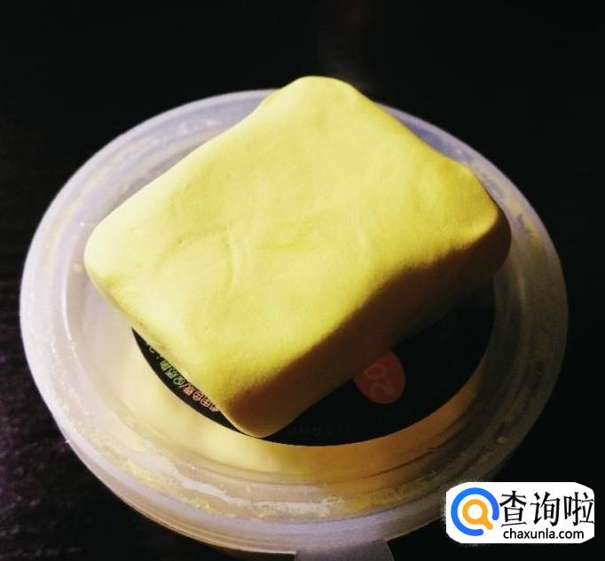 首先,我们选一块黄色轻粘土,做成正方体,并用剪刀在边缘压出波浪纹。